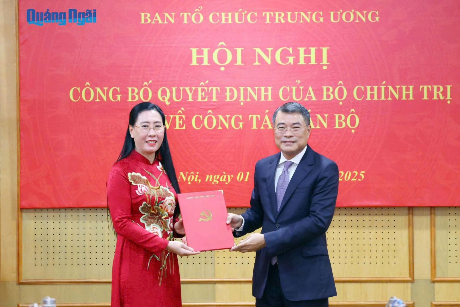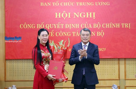 Tại hội nghị, Ủy viên Trung ương Đảng, Phó trưởng ban Thường trực Ban Tổ chức Trung ương Hoàng Đăng Quang đã công bố quyết định của Bộ Chính trị. Theo đó, Bộ Chính trị quyết định đồng chí Bùi Thị Quỳnh Vân, Ủy viên Trung ương Đảng, Bí thư Tỉnh ủy Quảng Ngãi thôi tham gia Ban Chấp hành, Ban Thường vụ Tỉnh ủy Quảng Ngãi nhiệm kỳ 2025 - 2030; điều động, phân công, bổ nhiệm giữ chức Phó Trưởng Ban Tổ chức Trung ương.