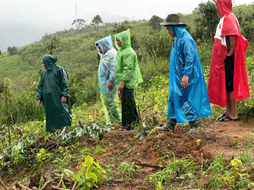 Tại thôn Rooc Mẹt, đoàn công tác ghi nhận một số vị trí xuất hiện vết nứt lớn, có nguy cơ sạt lở đất, ảnh hưởng trực tiếp đến đời sống và tài sản của người dân. Tại đây, lãnh đạo UBND xã đã thăm hỏi, động viên và vận động bà con sớm di chuyển đến nơi ở an toàn để phòng tránh rủi ro, đồng thời yêu cầu thôn theo dõi chặt chẽ diễn biến để kịp thời báo cáo.