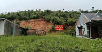 Lãnh đạo UBND xã chỉ đạo cắm biển cảnh báo khu vực có nguy cơ sạt lở tại thôn Rooc Mẹt