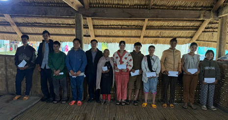 Đồng chí Nguyễn Văn Vĩnh – Phó Bí thư, Chủ tịch UBND xã trao tiền hỗ trợ cho 12 hộ dân thôn Rooc Mẹt