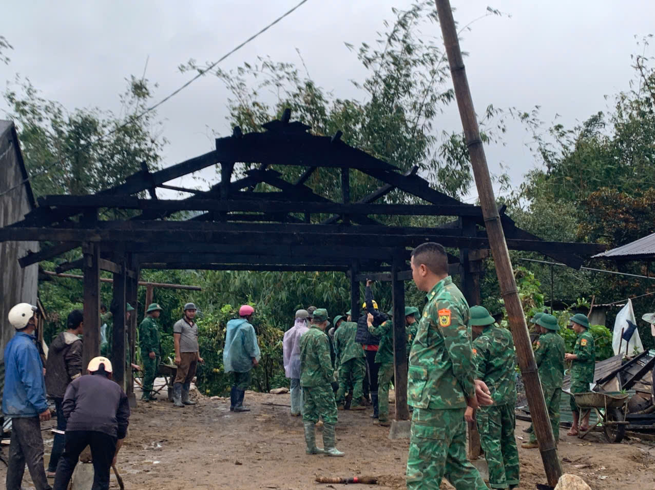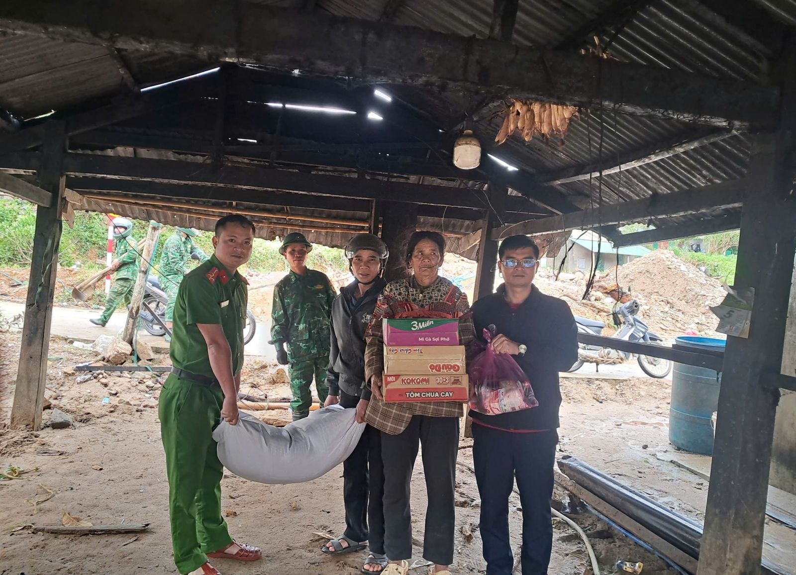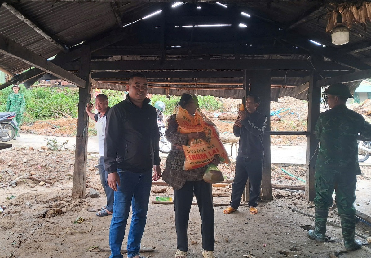 Lãnh đạo xã Đăk Plô trao nhu yếu phẩm hỗ trợ và huy động lực lượng dân quân, Công an xã, Đồn Biên phòng Đăk Plô giúp hộ gia đình khắc phục hậu quả sau cơn bão số 13 -Kalmaegi