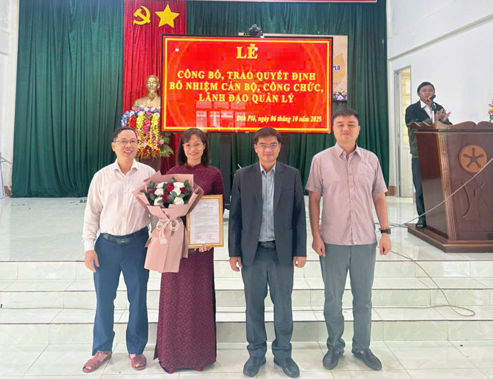 Tại buổi Lễ, đồng chí A Tải – Phó Chánh Văn phòng HĐND-UBND xã đã công bố Quyết định số 171/QĐ-CT ngày 26/8/2025 của Chủ tịch UBND xã về việc bổ nhiệm đồng chí Ma Thị Kìa – Chuyên viên Văn phòng HĐND-UBND xã, giữ chức vụ Phó Chánh Văn phòng HĐND-UBND xã Đăk Plô.