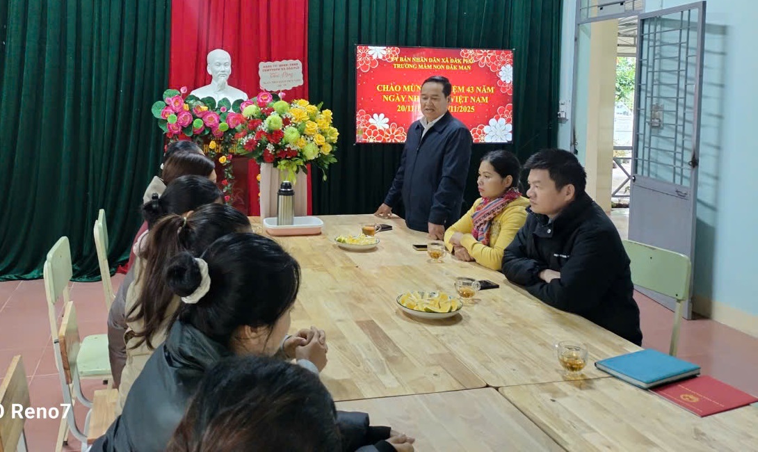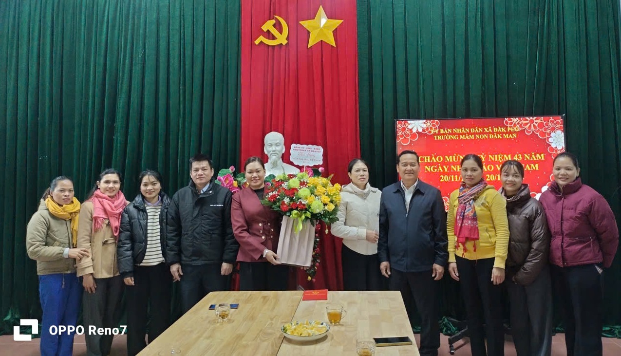 Nhân dịp 43 năm ngày Nhà giáo Việt Nam, thay mặt Đảng ủy – HĐND – UBND – UBMTTQVN xã, đồng chí Bí thư Đảng ủy, Chủ tịch HĐND xã gửi lời chúc mừng tốt đẹp đến toàn thể cán bộ, giáo viên, nhân viên toàn ngành giáo dục, cảm ơn sự tận tụy, tâm huyết của các thầy cô đối với sự nghiệp trồng người, chúc các thầy cô luôn mạnh khỏe, hạnh phúc và tiếp tục cống hiến cho sự nghiệp trồng người trên địa bàn xã Đăk Plô.