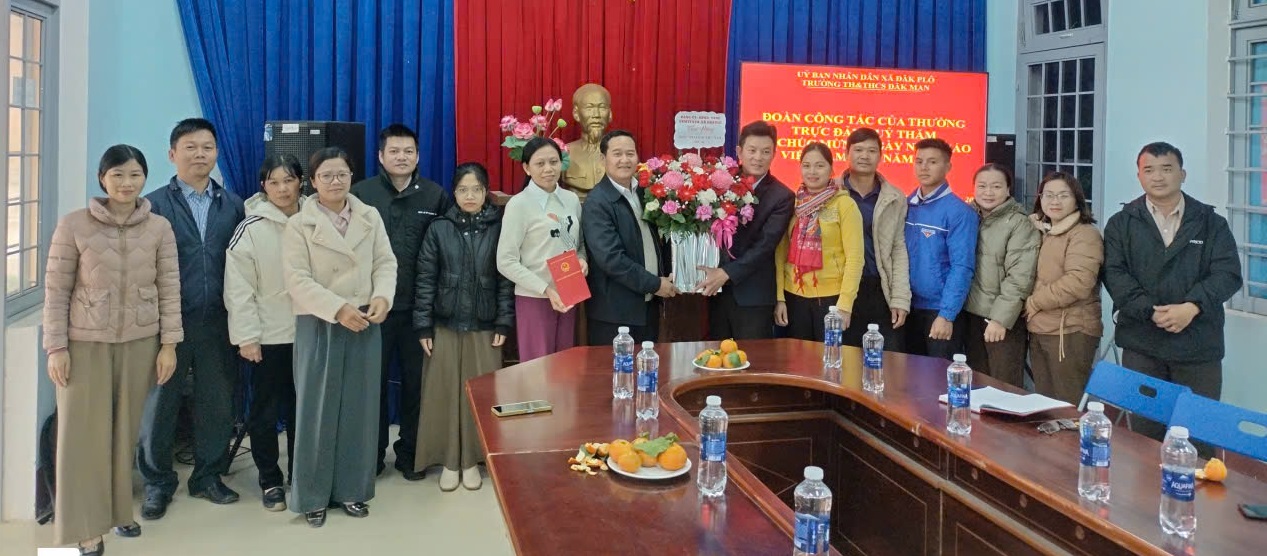 Ngày 19 /11, Thường trực Đảng ủy xã Đăk Plô đã tổ chức đến thăm và chúc mừng các Trường trên địa bàn xã, gồm: Trường Mầm non Đăk Nhoong, Trường TH-THCS Đăk Nhoong, Trường Mầm non Đăk Man, Trường TH-THCS Đăk Man nhân Kỷ niệm 43 năm ngày Nhà giáo Việt Nam 20/11/1982 – 20/11/2025. Tham dự còn có các đồng chí đại diện Thường trực HĐND xã, Lãnh đạo UBND xã, Lãnh đạo cơ quan tham mưu giúp việc Đảng ủy, Công an xã và Phòng Văn hóa – Xã hội xã.