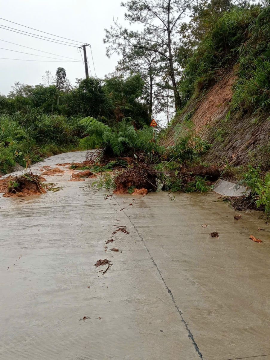 Hình ảnh một số tuyến đường bị sạt lở và cây đổ ngang đường gây ắc tắc giao thông trên địa bàn xã